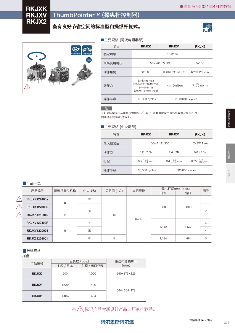 RKJXV系列——ALPS搖桿多功能操作裝置