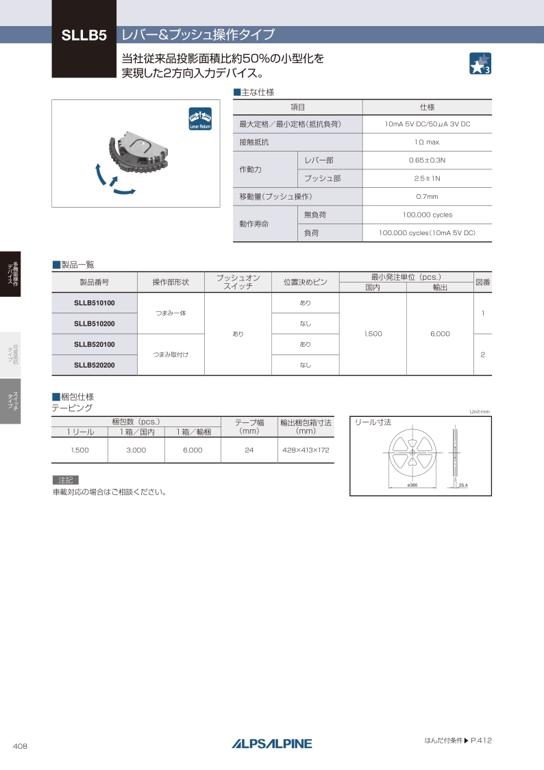 SLLB5系列投影面積僅50%(與本公司原有產(chǎn)品相比)的小型。方向分辨率:2方向 ? 功能:操作桿和按動 ? 尺寸(W×D×H):9.5×8.8×2.2mm ? 最大額定值:10mA 5V DC。