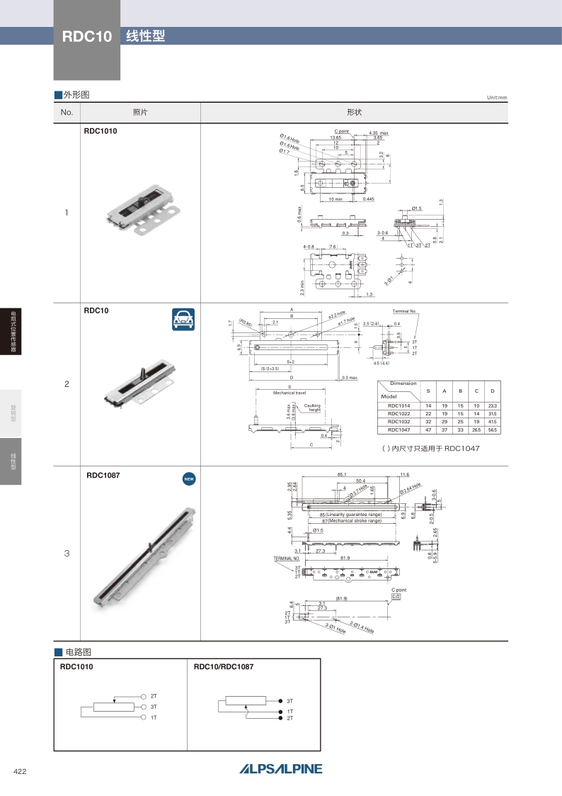 RDC10系列——ALPS電阻式位置傳感器(線性型)