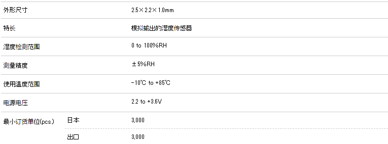 小型濕度傳感器(SMD)HSHCA系列小型封裝,測(cè)量精確,最大濕度測(cè)量范圍達(dá)到100%。型:表面貼裝 ? 安裝方法:表面貼裝。