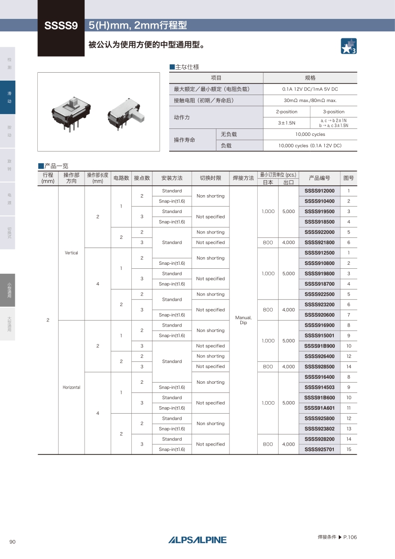 SSSS9系列——ALPS滑動(dòng)開關(guān)
