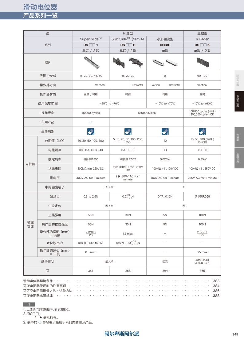 產(chǎn)品編號 照片 電阻體數(shù) 安裝方向 行程 操作部長度 總阻值 電阻規(guī)律 定位