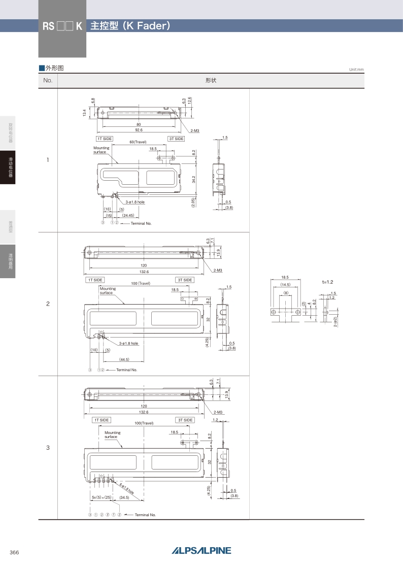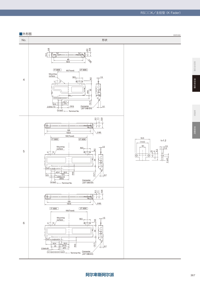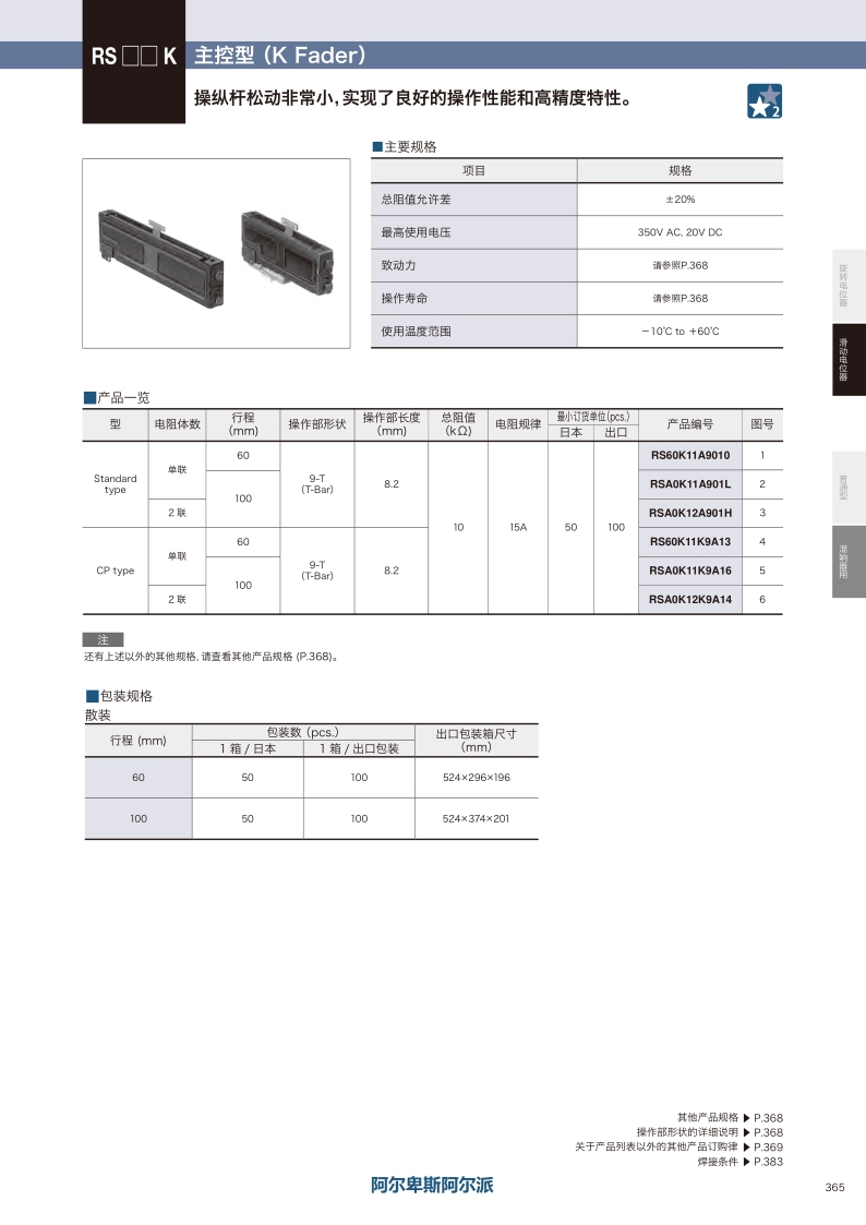 主控型K Fader操縱桿松動非常小,實現(xiàn)了良好的操作性能和高精度特性。主控 ? 行程:60/100mm ? 電阻體數(shù):單聯(lián),2聯(lián) ? 操作方向:Vertical。