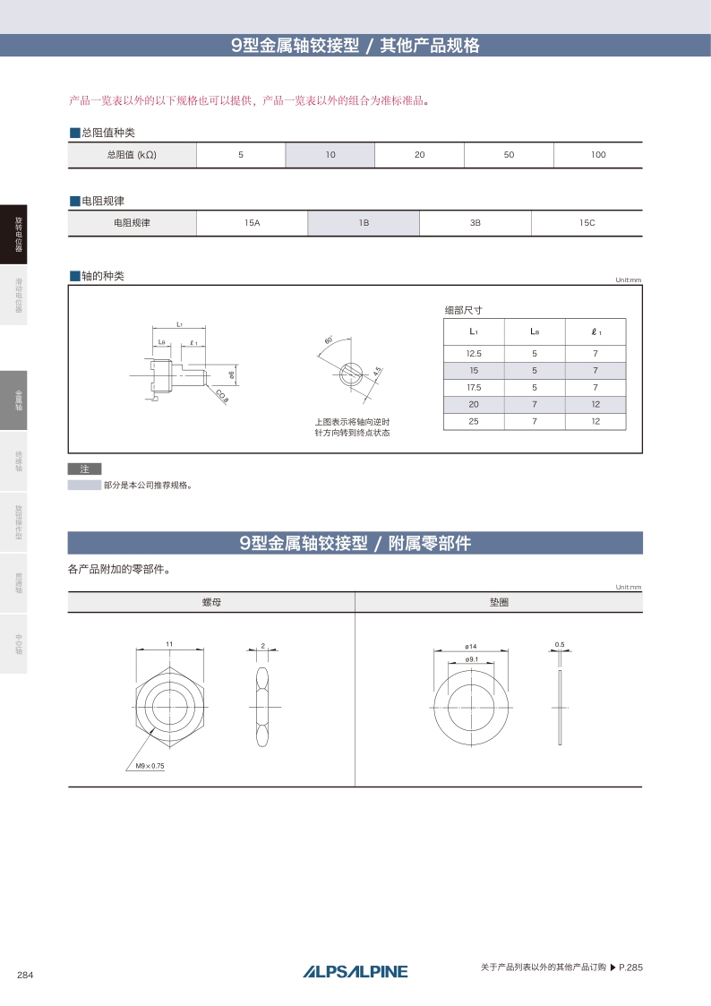 RK09L系列——ALPS金屬軸電位器