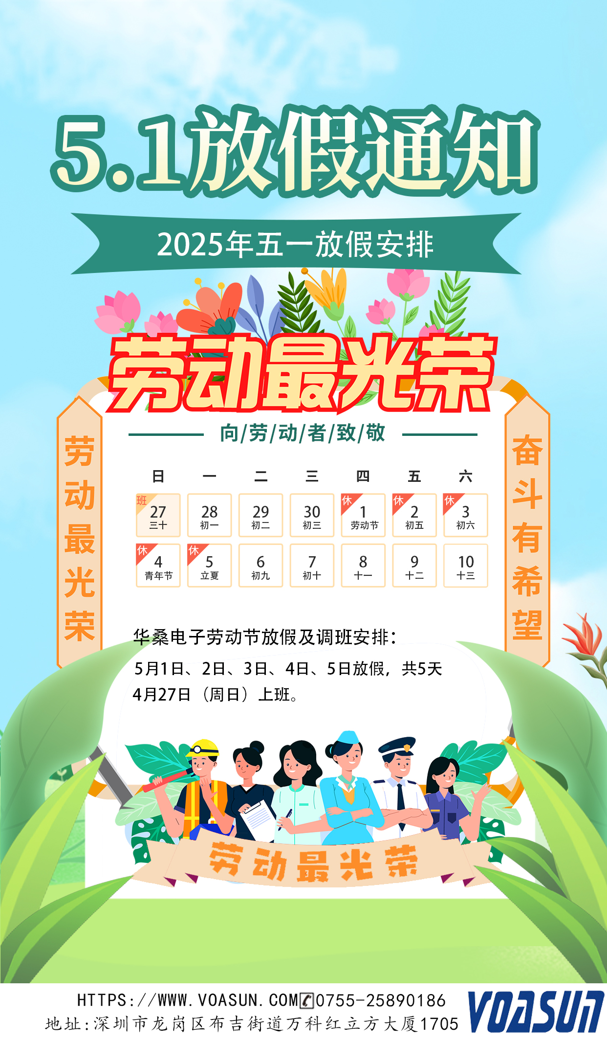 關(guān)于今年勞動節(jié)假期的安排如下: